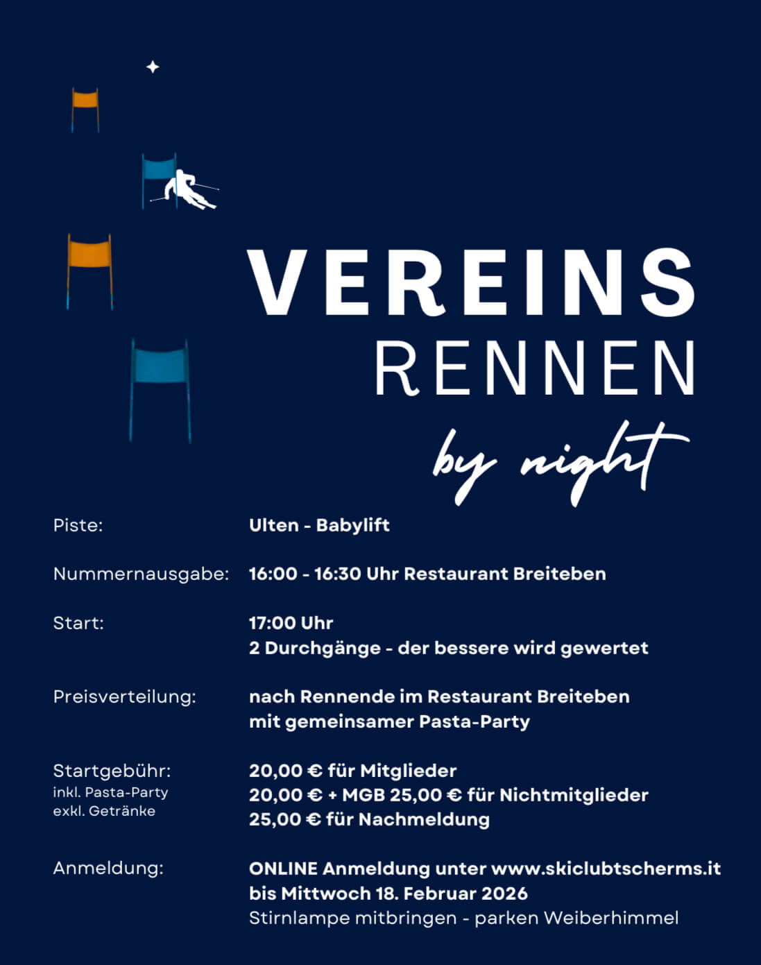 Online fino a giovedi 04/09/2025 sul sito www.skiclubtscherms.it